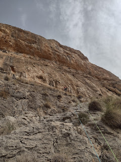 Después subo yo, tirando de brazo paso los primeros seguros antes del techo, me veo bien y sigo la marcheta, tocando algún canto y tirando de brazo paso el techo en A0.